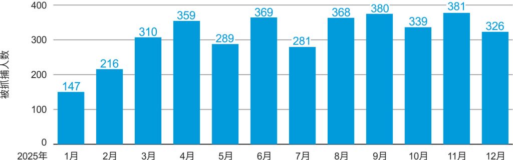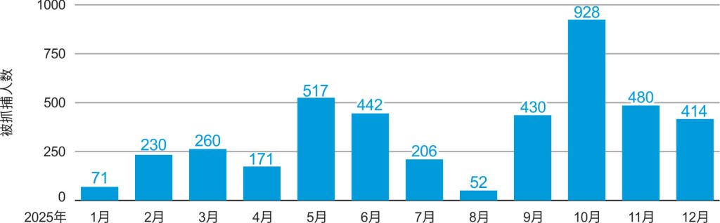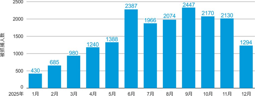 图2:2025年1月—12月全能神教会基督徒被抓捕人数