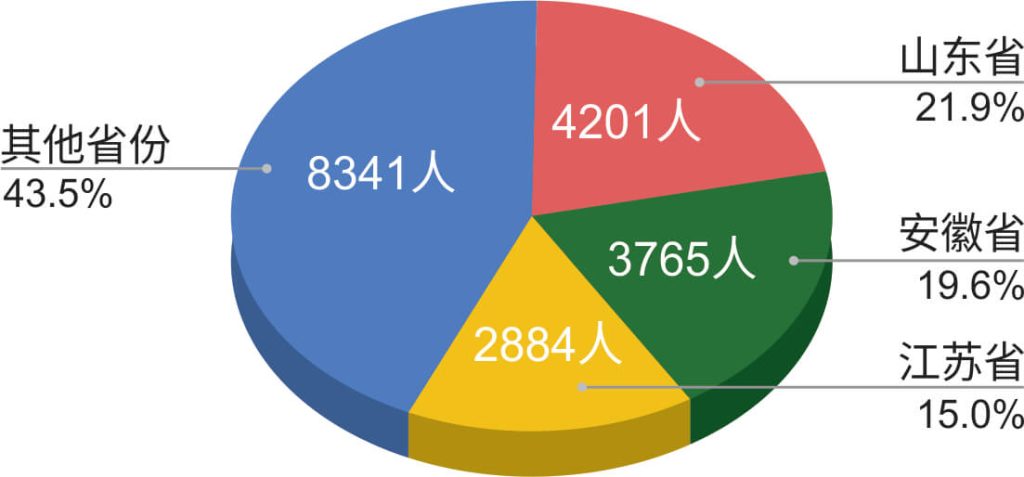 6月,全国各地被抓捕基督徒至少2387人。其中部分省份(市、区)被抓捕人数如下:江苏738人,山东442人,安徽369人,重庆167人,河南166人,广东164人,浙江87人,山西74人,湖北62人,云南42人。