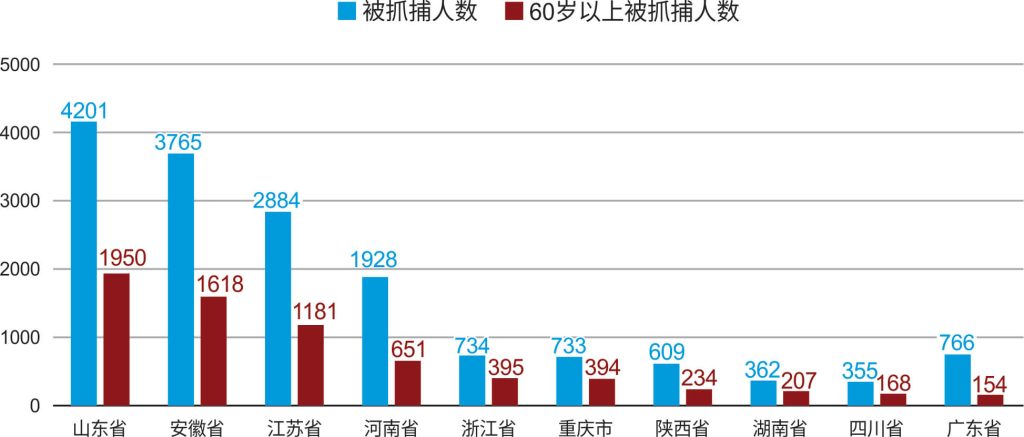 10月14日至16日,山东省日照市东港区32名基督徒被抓捕,其中老年基督徒有19人,最高年龄85岁;仅莒县有36名基督徒被抓,其中老年基督徒有15人。仅10月16日一天,潍坊市115名基督徒被抓,其中老年基督徒有62人,最高年龄82岁。